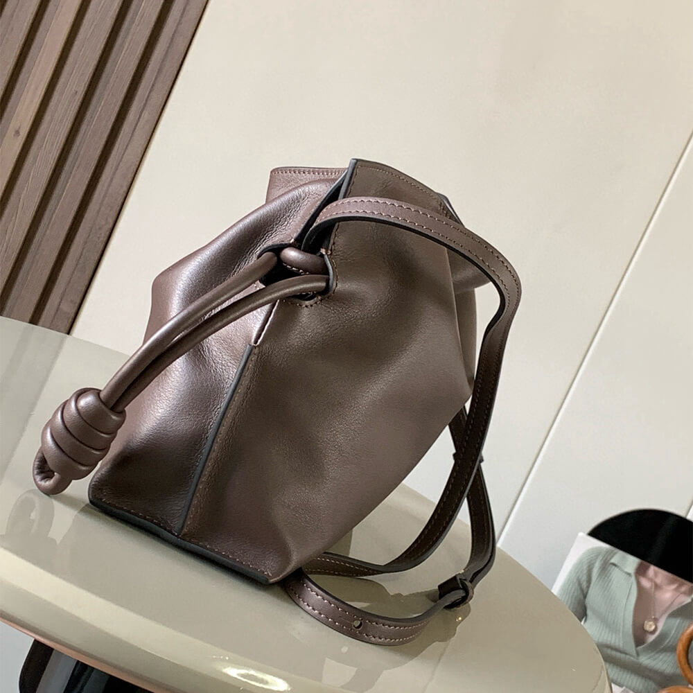 LOEWE Mini Pebble bucket in smooth calfskin(high-end grade)
