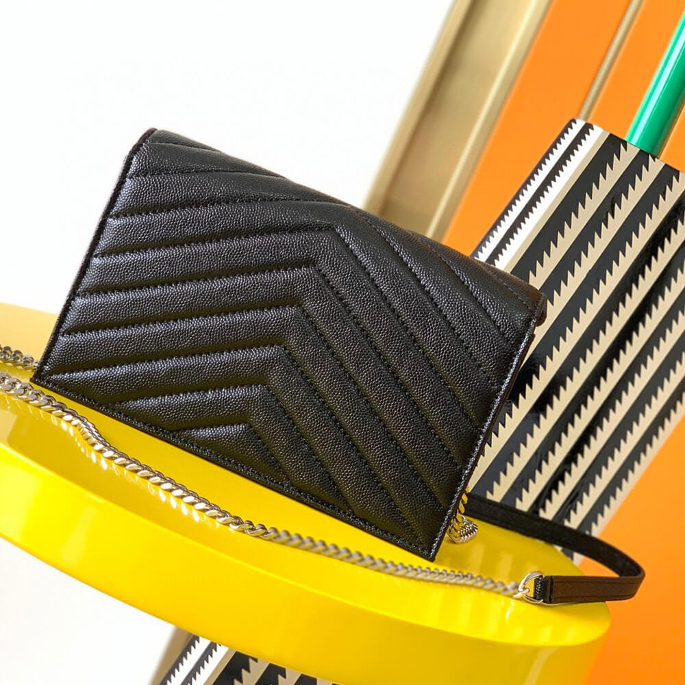 YSL cassandre envelope chain wallet in grain de poudre leather(High-end Grade)