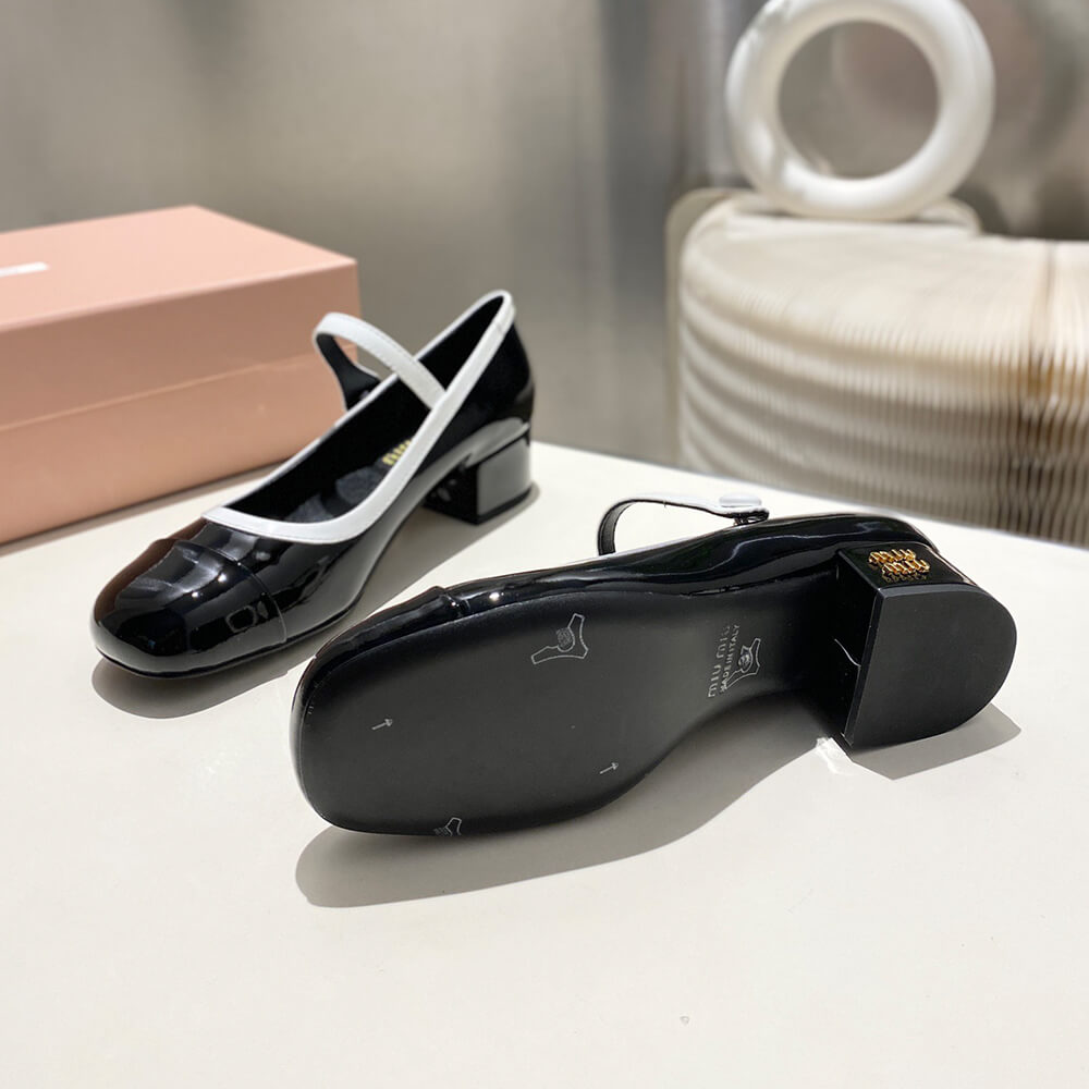 MiuMiu Two-tone patent leather Mary Jane pumps