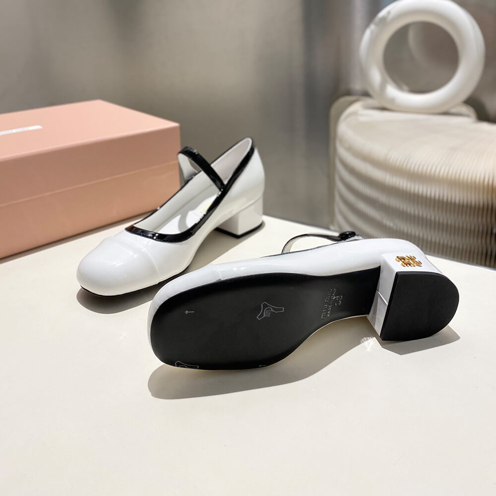 MiuMiu Two-tone patent leather Mary Jane pumps