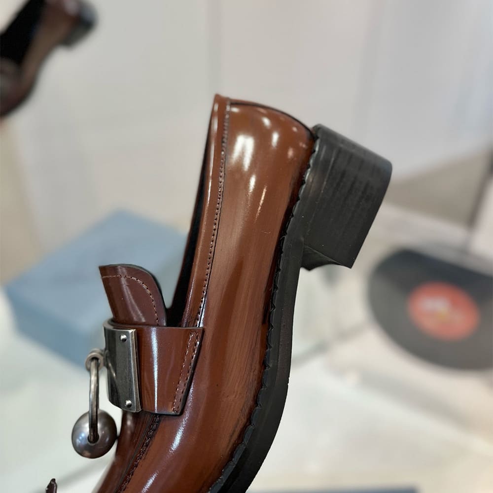 PRADA Brushed leather loafers with metal details